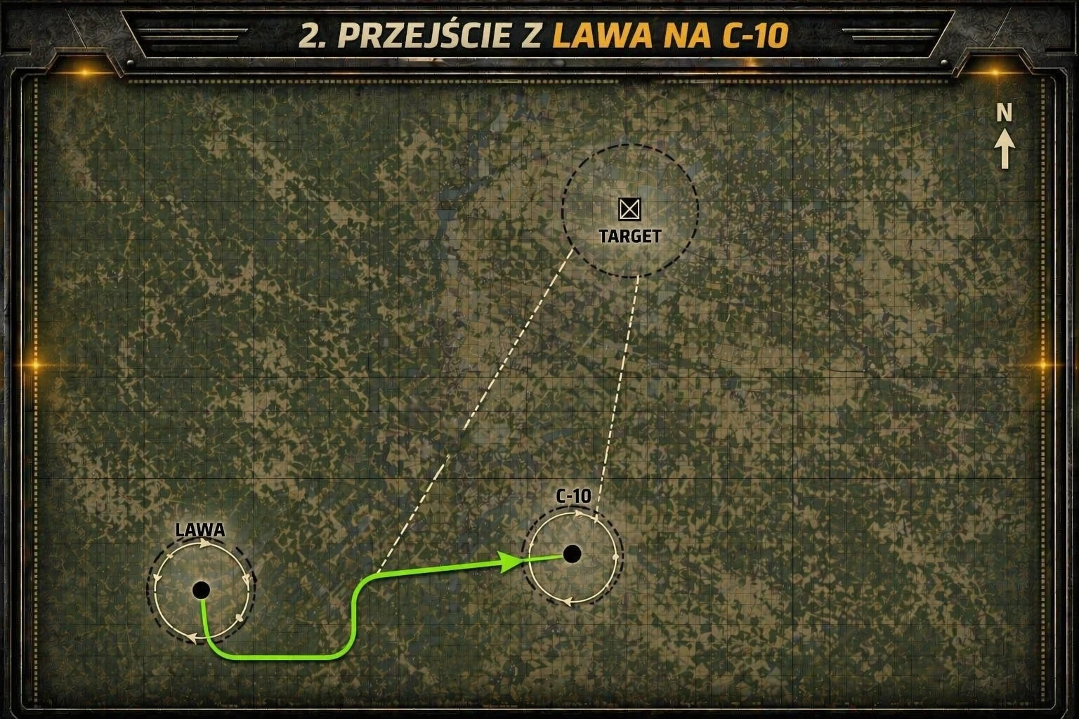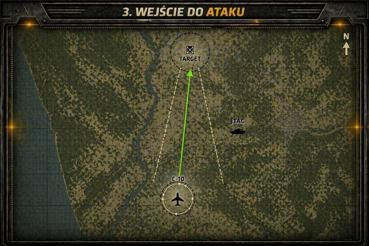 Obszar zaangażowania określony jest odległością od ostatniego waypointu. W tej strefie wszystkie wykryte maszyny wroga powinny zostać zniszczone.
